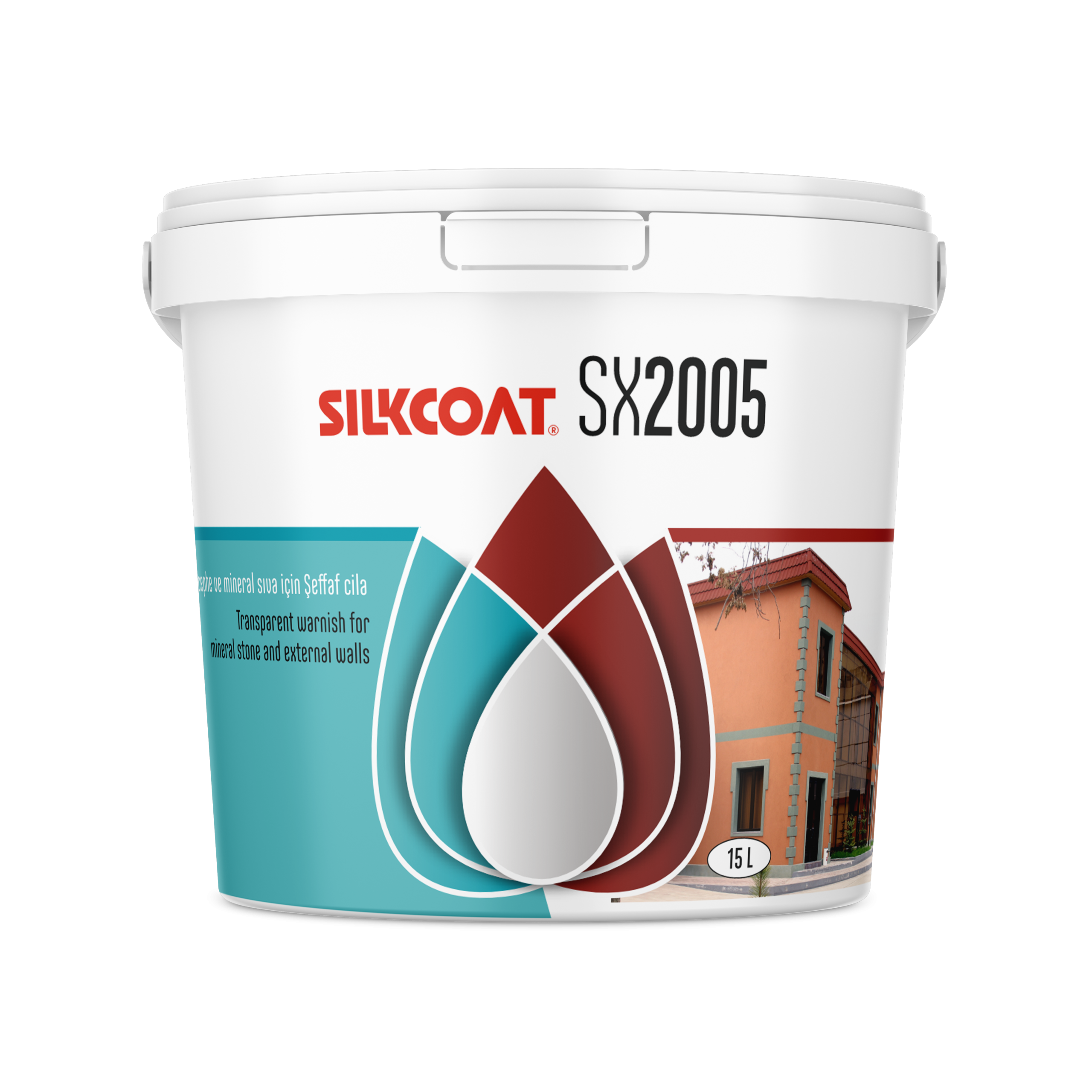 Özellikleri: Mineral sıvaya özgü üretilen SX 2005 Cila, oluşturduğu film tabakası sayesinde mükemmel su direnci sağlar. Mineral sıvaya ve uygulandığı diğer dış cephe yüzeylere dekoratif yönden canlılık vermesinin yanı sıra mineral sıvanın dış cephe direncini arttırarak uzun yıllar kullanılmasını sağlar. Sıva yüzeyine nüfuz ederek çok üçlü bir şekilde yapışır. Su bazlı yapısı sayesinde insan sağlığına ve çevreye zarar vermez.